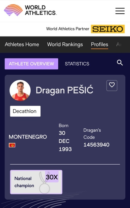 I am currently a member of the Montenegro National Team. I earned a silver medal in the decathlon at the 2014 Balkan Championships, as well as 2024 Balkan Championships, and a bronze medal in the decathlon at the 2015, 2017, 2021, and 2022 Balkan Championships. I represented Montenegro at total of 9 European Team Championships from 2013 to the present day. I hold 32 National Championship Titles