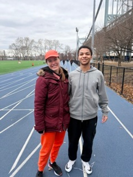 Jake has never competed before but now wants to enter college as a 200/400/800 runner. Coach Jacqueline eased him into the game and he came away with self confidence that he could do this. She realized the value of not only good form and training but that the mind game is half the battle with newbies. Will continue to work with her to get Jake ready for the season!