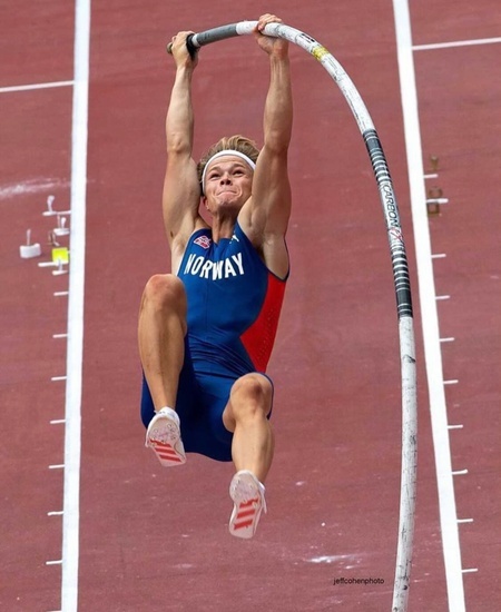 I’ve competed at both the collegiate and professional level. I’m a two-time NCAA champion in the pole vault with a PR of 5.86m (19'3"), Olympian, and a World championship finalist. I’ve been on the Norwegian National team since 2018. Before specializing in the pole vault I competed and trained for the hurdles and decathlon.