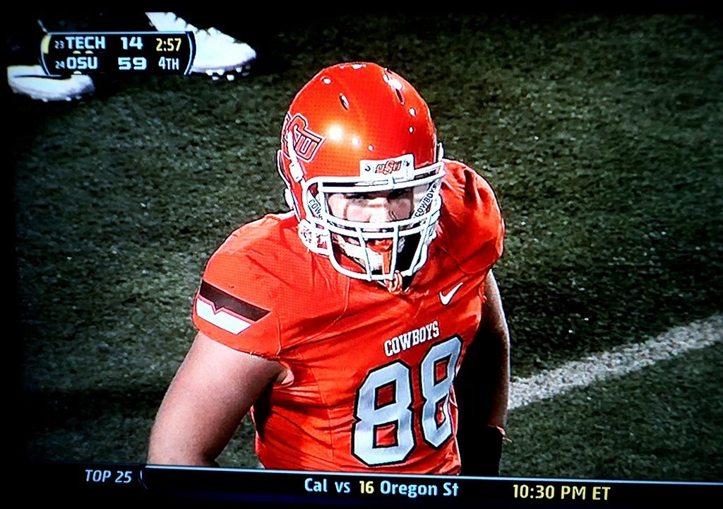 Played three years at Oklahoma State University as a Defensive End (#88) (11-14) Big 12 Champions in 2011, BCS Tostitos Fiesta Bowl Champions in 2011, Heart of Dallas Bowl Champions in 2012, Cotton Bowl Finalists in 2014. Was 1st team All-District, All-Area, and All-State in high school (Plano Senior High).