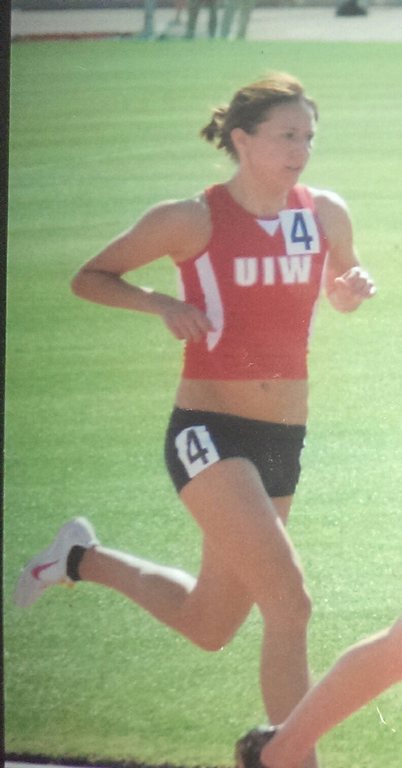 Throughout college competition my personal records were: 1500m-4:41; 3,000m indoor-10:11; 3000m outdoor-10:15; 5k-17:35. At UIW I broke many school records; many indoor and outdoor. I only ran for UIW for one year and my biggest honors were: Cross Country Heartland Conference Champion; Cross Country All-Heartland Conference; Cross Country Heartland Conference Runner of the Year; UIW Female Athlete of the Year; Achieved a provisional qualifying time in the 5,000m for the National Championships.
